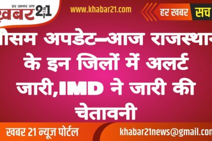 मौसम अपडेट–आज राजस्थान के इन जिलों में अलर्ट जारी,IMD ने जारी की चेतावनी