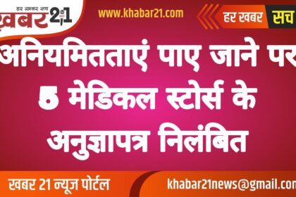 अनियमितताएं पाए जाने पर 5 मेडिकल स्टोर्स के अनुज्ञापत्र निलंबित
