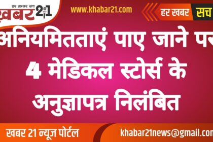 जांच के दौरान विभिन्न अनियमितताएं पाए जाने पर 4 मेडिकल स्टोर्स के…