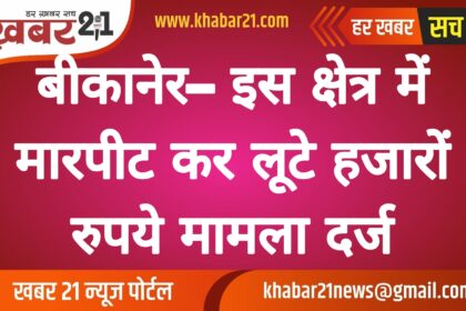 बीकानेर– इस क्षेत्र में मारपीट कर लूटे हजारों रुपये मामला दर्ज