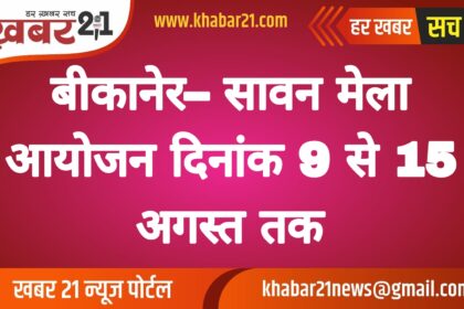 बीकानेर– सावन मेला आयोजन दिनांक 9 से 15 अगस्त तक