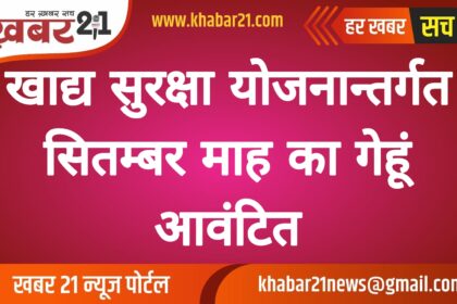 खाद्य सुरक्षा योजनान्तर्गत सितम्बर माह का गेहूं आवंटित