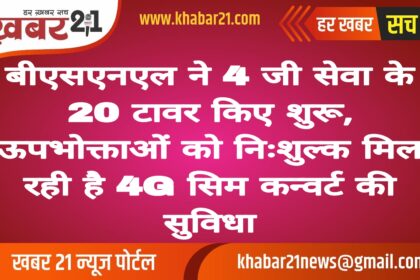 बीएसएनएल ने 4 जी सेवा के 20 टावर किए शुरू, ऊपभोक्ताओं को निःशुल्क मिल रही है 4G सिम कन्वर्ट की सुविधा