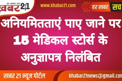 अनियमितताएं पाए जाने पर 15 मेडिकल स्टोर्स के अनुज्ञापत्र निलंबित