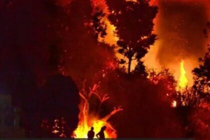उत्तराखंड के पौड़ी ज़िले में रविवार को जंगल में लगी आग थापली…