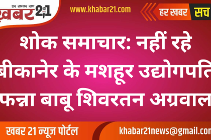 शोक समाचार: नहीं रहे बीकानेर के मशहूर उद्योगपति फन्ना बाबू शिवरतन अग्रवाल