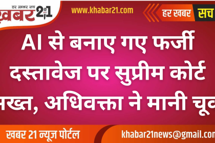 AI से बनाए गए फर्जी दस्तावेज पर सुप्रीम कोर्ट सख्त, अधिवक्ता ने मानी चूक