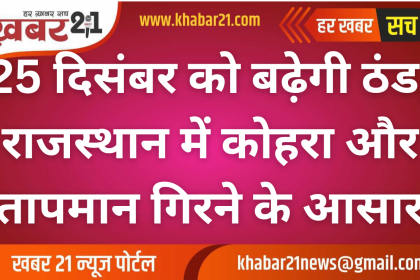 25 दिसंबर को बढ़ेगी ठंड, राजस्थान में कोहरा और तापमान गिरने के आसार
