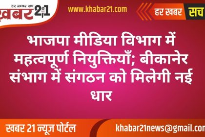 भाजपा मीडिया विभाग में महत्वपूर्ण नियुक्तियाँ; बीकानेर संभाग में संगठन को मिलेगी नई धार