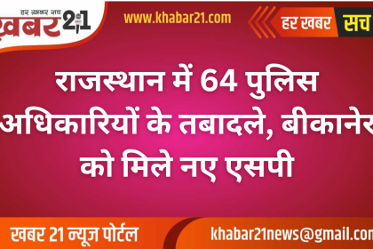 राजस्थान में 64 पुलिस अधिकारियों के तबादले, बीकानेर को मिले नए एसपी